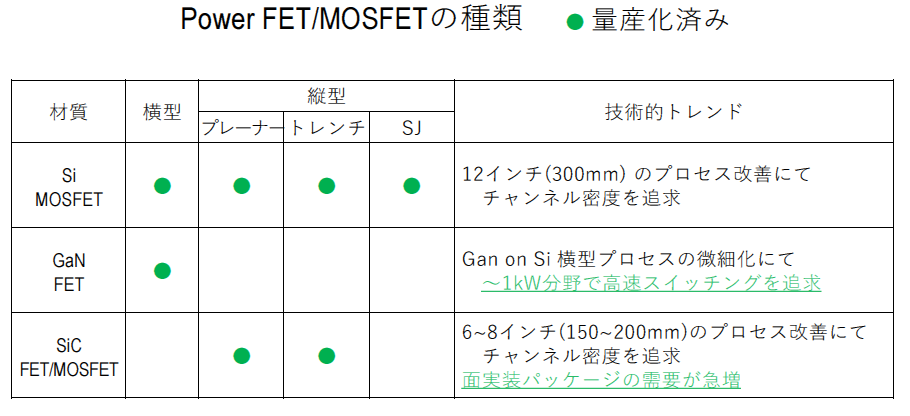 - SiCは縦型構造が主流