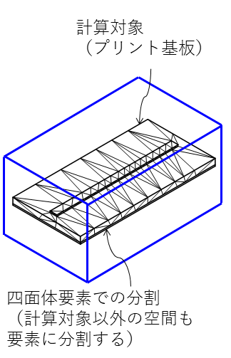 多数の誘電体を含む複雑な形状や共振が発生するような現象の計算に向いてします.プリント基板の電源面とグラウンド面のインピーダンスや放射電界の計算に適しています.