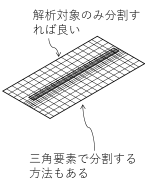 MoMの長所は,電流の流れる導体だけ分割すれば良く,何もない空間は分割する必要がありません(図3).その結果,比較的少ない要素で解析対象をモデル化できます.