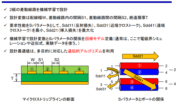パレート最適解とは,複数の設計目標を同時に満たす最適解のことを指します.例えば,Sdd11やSdd31を最小化しつつ,Sdd21を最大化するような設計が求められます.機械学習を使うことで,これらの設計目標をバランス良く達成できる設計解を自動で探索することが可能です.〈著:ZEPマガジン〉
