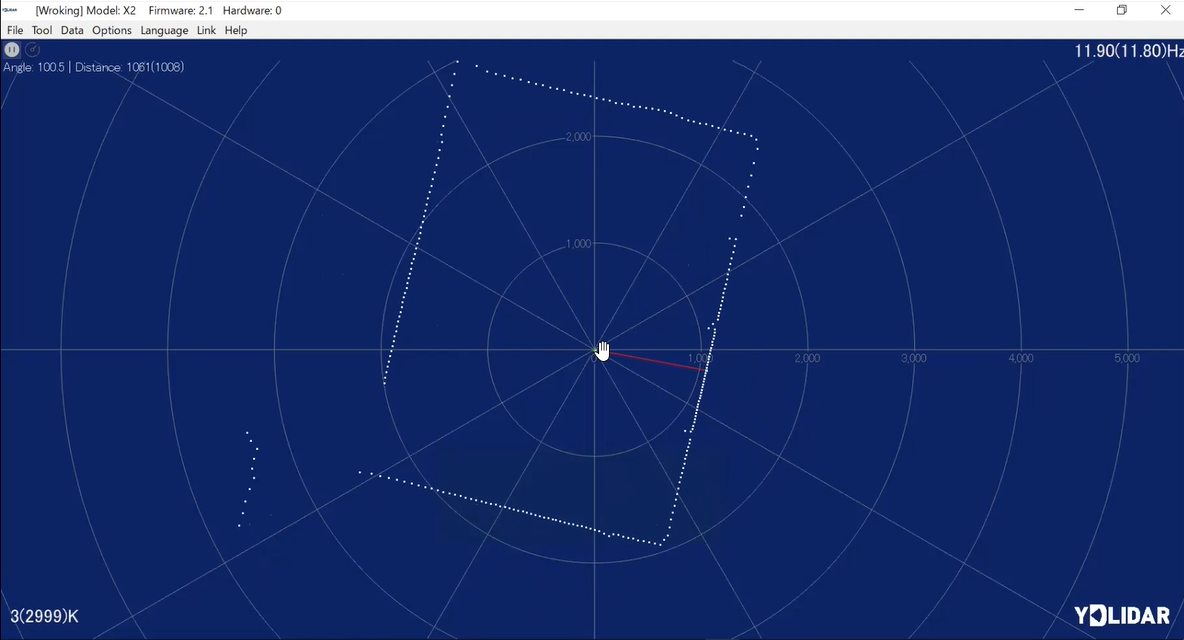 - LiDAR動作確認用プログラム.次のWebページで[Triangulation]→[YDLIDAR X2]→[TOOL]を選択して,LidarViewer_V0.3.5.zipをダウンロード後,任意のフォルダにLidarViewer_V0.3.5.exeを保存してください.