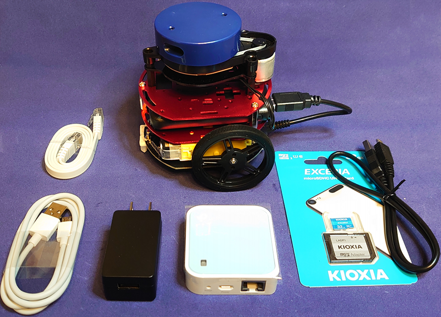 本製品は,LiDAR搭載ロボット完成品と実習環境セットアップ済みラズベリー・パイを動かしながら,ROSの使い方からプログラミング技術,リアルタイム地図作成まで,ROSやSLAMの基本技術を1日でマスタできる講義ビデオ付きパーツセットです.