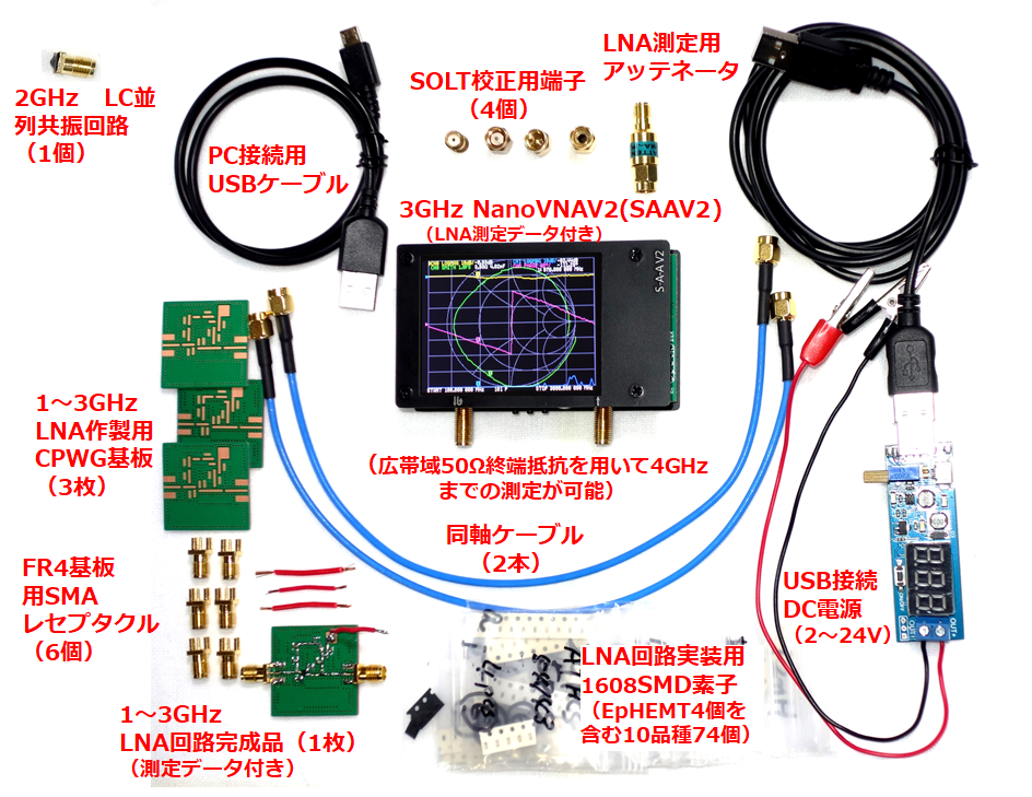 なお,本製品は,2021年10月2日,ZEPエンジニアリングが開催した全国オンライン・セミナ「3GHzベクトル・ネットアナ付き!RF回路シミュレーション&設計・測定入門」の受講者に送付したNanoVNAV2やRFパーツ,講義の録画動画,講義テキストのセット商品です.