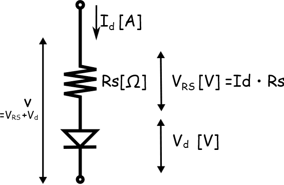 \begin{equation} \begin{aligned} V_D = N V_T \ln\left(\frac{I_D}{I_S}\right) \end{aligned} \end{equation}STEP2:直列抵抗を考慮する