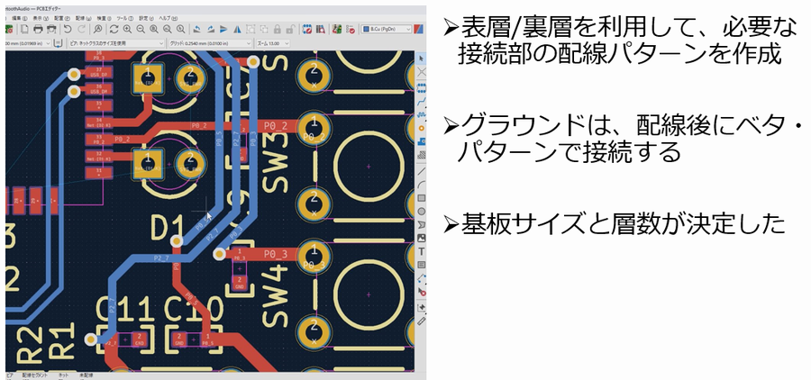 配線の終盤では,SYS_PWR信号など共有信号の配線を太く,裏面を活用して効率よく完了させます.