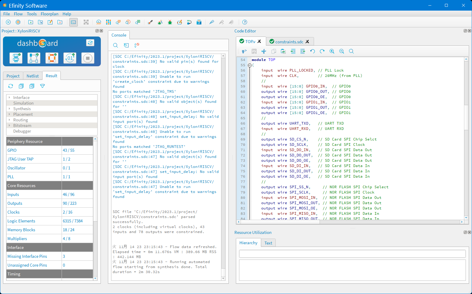 Efinity IDEの画面の例を図5に示します.