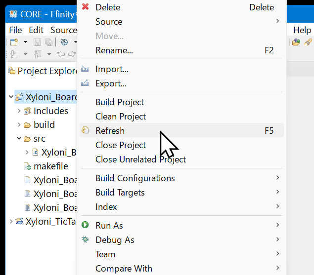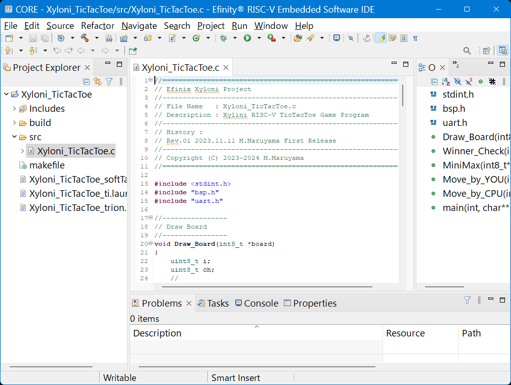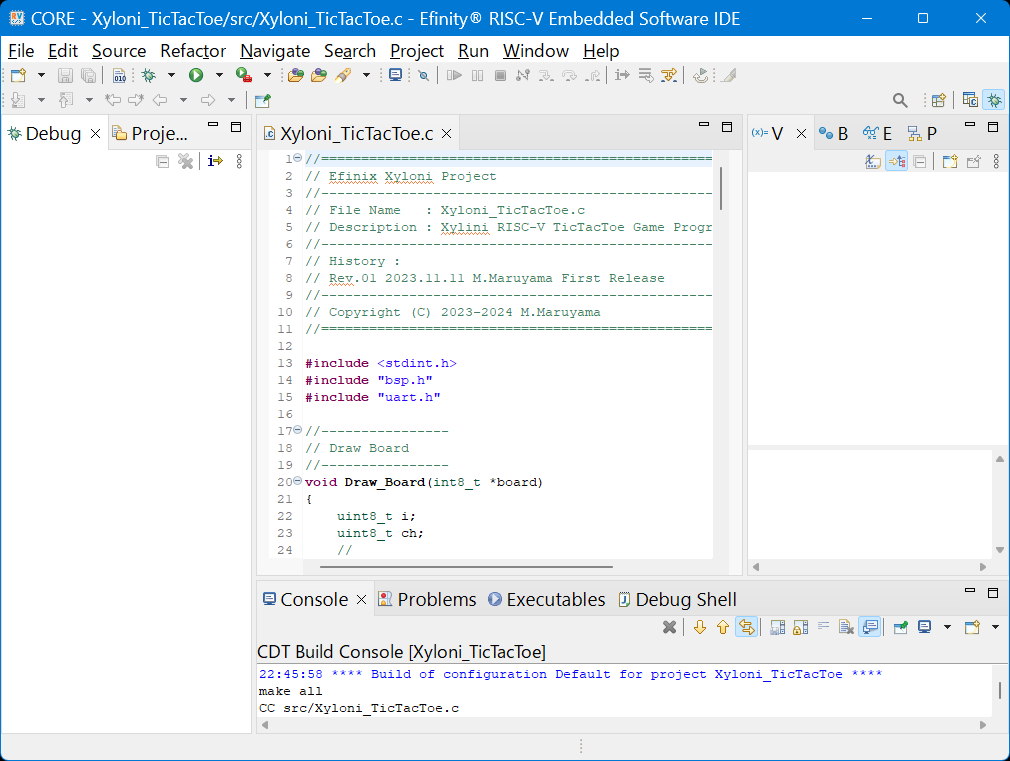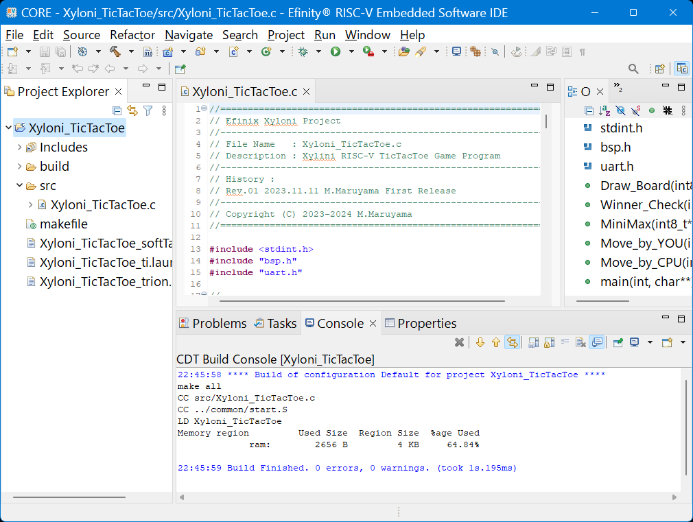ソース・コードXyloni_BoardTest.cの編集とセーブが終わったら,このプロジェクトをビルドしましょう.