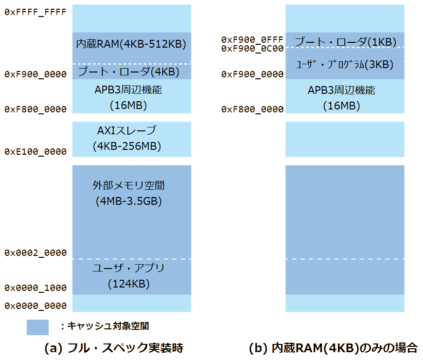 このサイズは,RAMサイズ4KBからブート・プログラム1KBを引いた3KBを越えており,一見するとRAMに収まらないように見えます.しかし,プログラム本体とデータ領域を合わせたサイズであり,プログラム領域は3KB以下になっているので,ブート中にブート・プログラムを壊すことなく正常動作します.