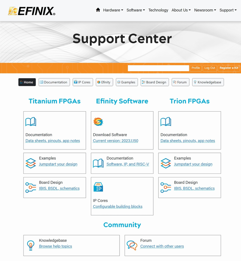 本稿の執筆には,本ページに記載のEfinix社のFPGAに関する技術資料を参照しました.いずれも同社ホームページのSupport Centerから入手できます.各資料のバージョンは2023年10月時点のものであり,頻繁に更新されているので,最新版を参照するようにしてください.