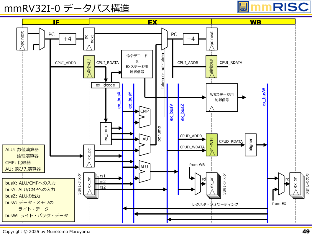 - CPUの仕様 / 命令フェッチ / 命令デコードと実行 / メモリ・アクセス / ライトバック / パイプライン動作 / 内部構造と動作タイミング / 命令前後の影響とフォワーディング