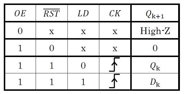 Aレジスタの入出力端子を図10のように定めます.また,レジスタの動作を表す特性表を表3に示します.外部から見てこのとおりの動作を行う回路を設計することが,今後の目標となります.