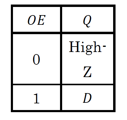 Bレジスタの入出力仕様を図14に示します.“$OE$”端子は出力を許可する「アウト・イネーブル」(Out Enable)信号を入力する端子です.また,Bレジスタの特性表を表4に示します.