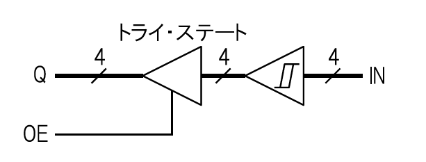 図21に入力ポートの内部ブロック図を示します.最低限の機能を実装するならばトライ・ステート・バッファだけで十分ですが,今回はシュミット・トリガを入れて外部から入力された信号を波形整形するようにしています.