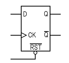 後で設計するCPUの「レジスタ」回路では,この「非同期リセット付きポジティブ・エッジ・トリガ型D-FF」を基本要素として使います.なお,リセット信号は“0”で有効になるので,リセット入力端子の名前は「負論理」であることを示す「バー」を付けています.