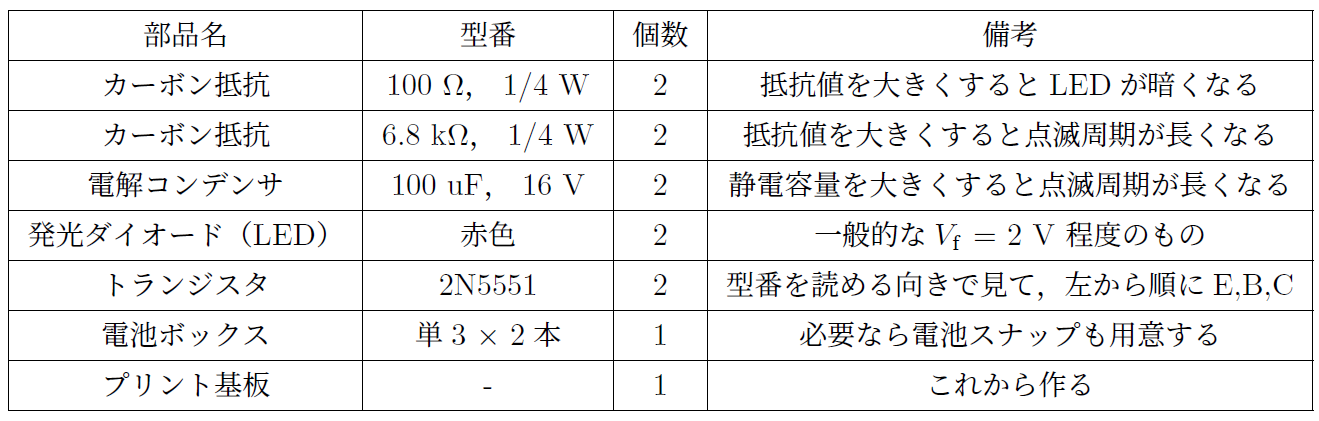 今回使う部品のリストを表1に示します.後でプリント基板を設計するときは,これらの部品の寸法に合わせてそれぞれのフットプリントを選択します.