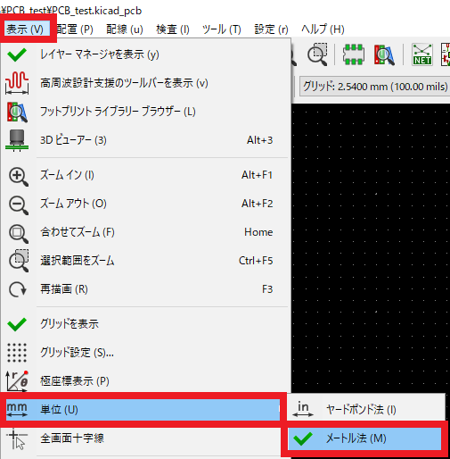 図19のように,メニュー・バーから [表示] - [単位] - [メートル法] をクリックします(ヤード・ポンド法の方がわかりやすいという方はそちらでも結構です).