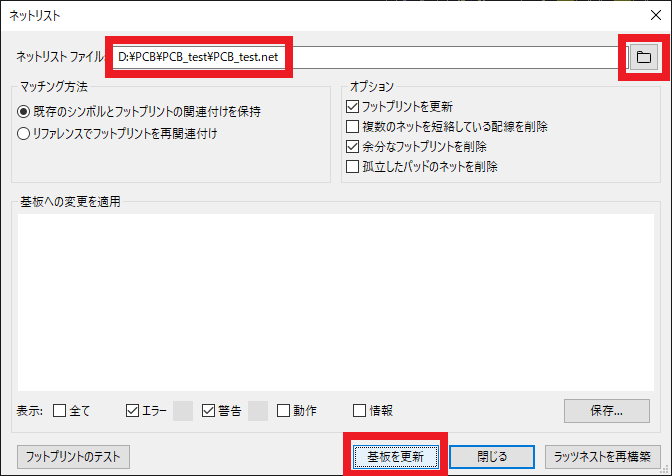 基板のレイアウト作業を途中まで進めた後に回路図を変更・修正した場合は,ネットリストを再読み込みします.