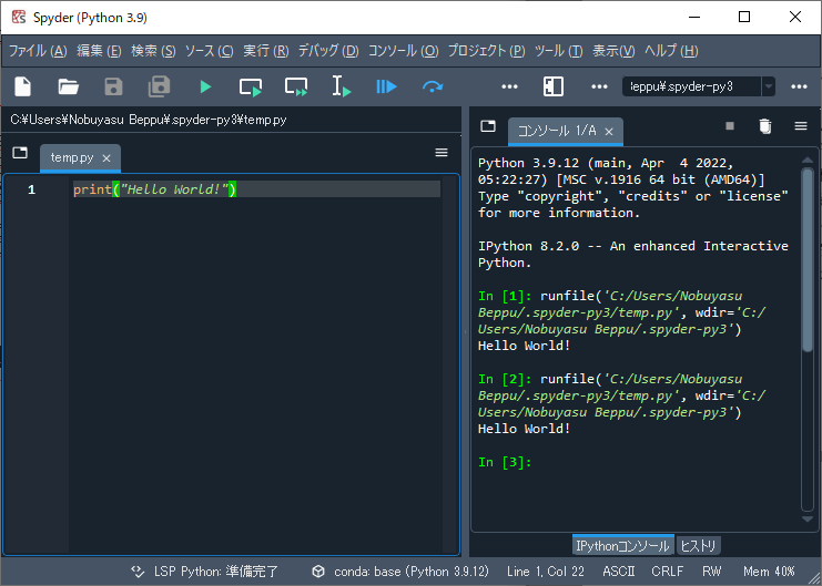 Spyderを起動して基本的な設定をする