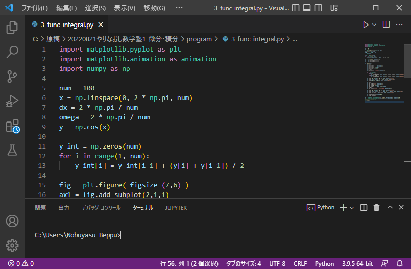 VS Codeはあくまでエディタであり,別途Python公式のインタプリタをインストールする必要があります.さらにNumPyやMatplotlibも手作業でインストールすることになります(パスの設定さえ間違わなければ基本的に簡単).