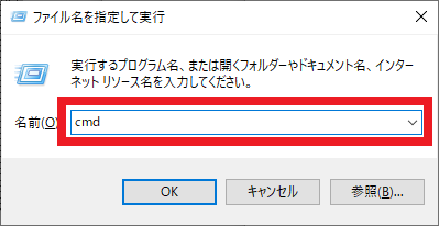 [Windows] キー + [r] キー を押して,図108のように「ファイル名を指定して実行」のウィンドウを出します.ここで“cmd”と入力して [Enter] を押すと,コマンド・プロンプトが起動します.