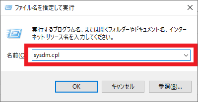 [Windows] キーを押しながら [r] キーを押して,図110のように「ファイル名を指定して実行」の画面を開きます.ここで“sysdm.cpl”と入力して [Enter] を押すと,「システムのプロパティ」というウィンドウが表示されます.
