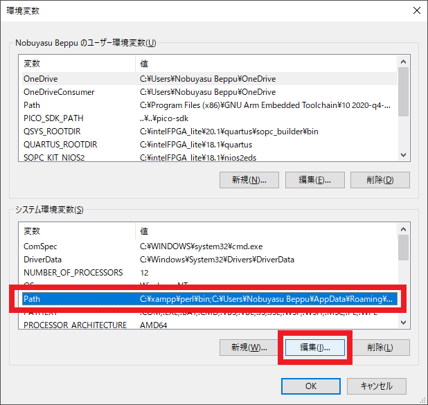 図112のように「システム環境変数」の欄で“Path”という項目を選択して,[編集] をクリックします.