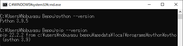※コマンド・プロンプト上で問題なくPythonやpipが実行できている場合は,この作業は不要です.