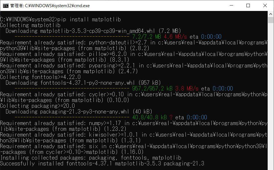 PythonインタプリタとNumPy,Matplotlibをインストールする