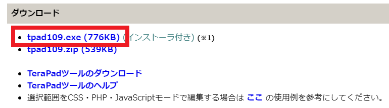 図84のように,TeraPadの公式ダウンロード・サイトにアクセスしてインストーラ“tpad109.exe”をダウンロードします.