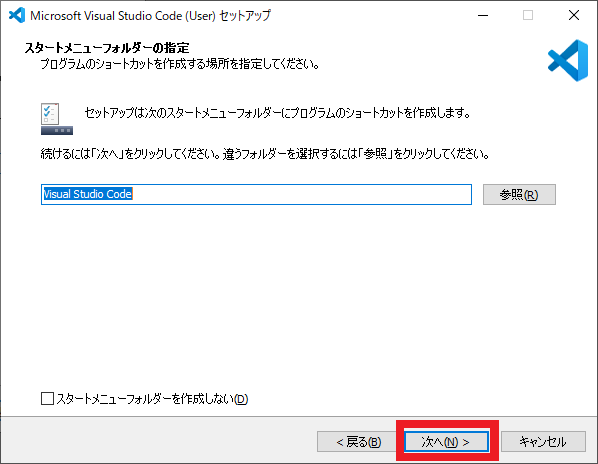 図89の画面ではデスクトップにショートカットを作るかどうかを聞かれます.お好みで設定してください.ここで [次へ] をクリックするとインストールが始まります.