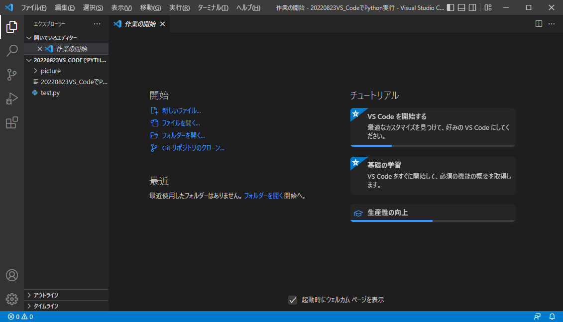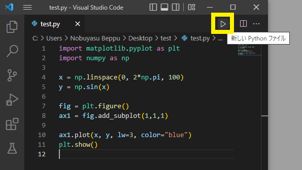 VS CodeからPythonインタプリタを呼んで,問題なくプログラムを実行できるか確認しておきます.