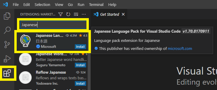 VS Codeの再起動後に,図65のように表示言語が日本語になっていることを確認してください.