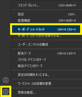 図74に示すように,画面左側の歯車のマークをクリックして「キーボード ショートカット」をクリックします.