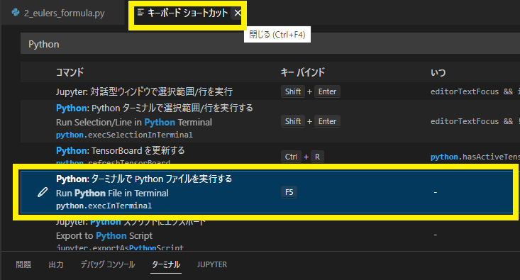 VS Code上でPythonプログラムを実行する時のショートカット・キーを設定します.必須ではありませんが,設定しておくと便利です.
