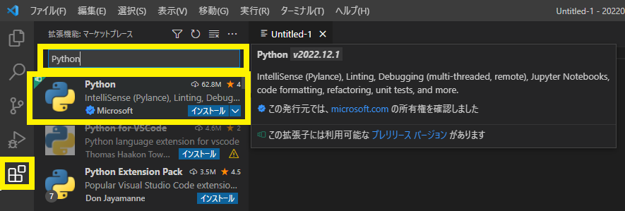 VS CodeにPythonの拡張機能を追加する