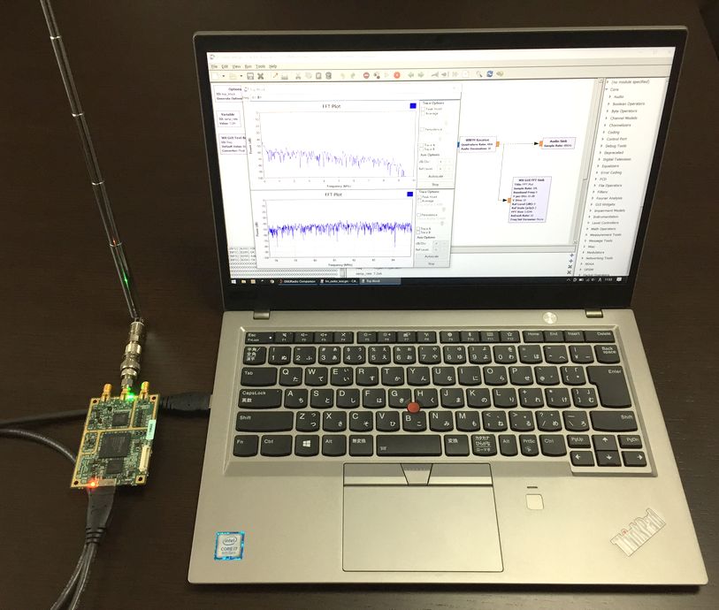 もしうまくいかない場合は,USRPとの接続を確認し,各ブロックの接続やパラメータ設定に誤りがないことをよく確認してください.