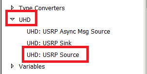 続いて,GNU Radioの画面右側の一覧から“UHD”(USRP Hardware Driver)の欄を展開します(図31).この中に“UHD: USRP Source”というブロックがあるので,これをドラッグしてフロー・グラフ画面に追加します(図32).