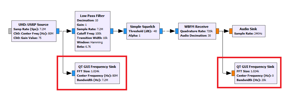 なお,ここではTOKYO FM(80.0 MHz)を意識して“80e6”という値にしましたが,この値はお好みで変更して構いません.NHK-FMなら“82.5e6”,J-WAVEなら“81.3e6”となります.