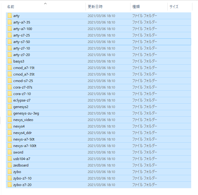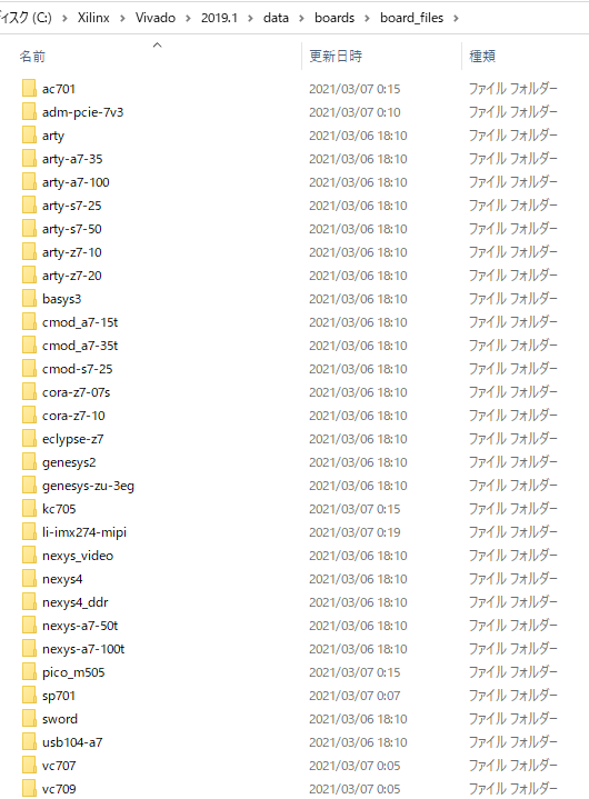 ダウンロードした圧縮ファイルを展開して,“vivado-boards-master/new/board_files/” の中のファイルをすべてコピーします(図21).これらをVivadoのインストール・ディレクトリ内にある“C:/Xilinx/Vivado/2019.1/data/boards/board_files”(デフォルトの場合)に保存します(図22).これでVivadoはEclypse Z7ボードの内部構成を把握できるようになります.