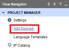 ダウンロードした.xdcファイルをプロジェクトに追加します.Vivadoの画面左側の“Flow Navigator”の中から“Add Sources”をクリックします(図32).すると図33の画面が表示されるので“Add or create constraints”を選択して[Next]をクリックします.