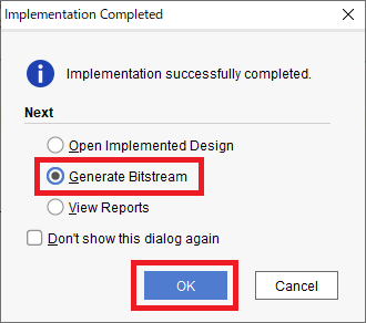 配置配線が完了したら,Zynqに書き込むPLの定義ファイルである「ビットストリーム」(bitstream)を作成します.配置配線が完了した後に表示される図54の画面で“Generate Bitstream”を選択して[OK]をクリックします.図55の画面ではビットストリームの作成に使用するプロセッサのコア数を設定して[OK]をクリックします.