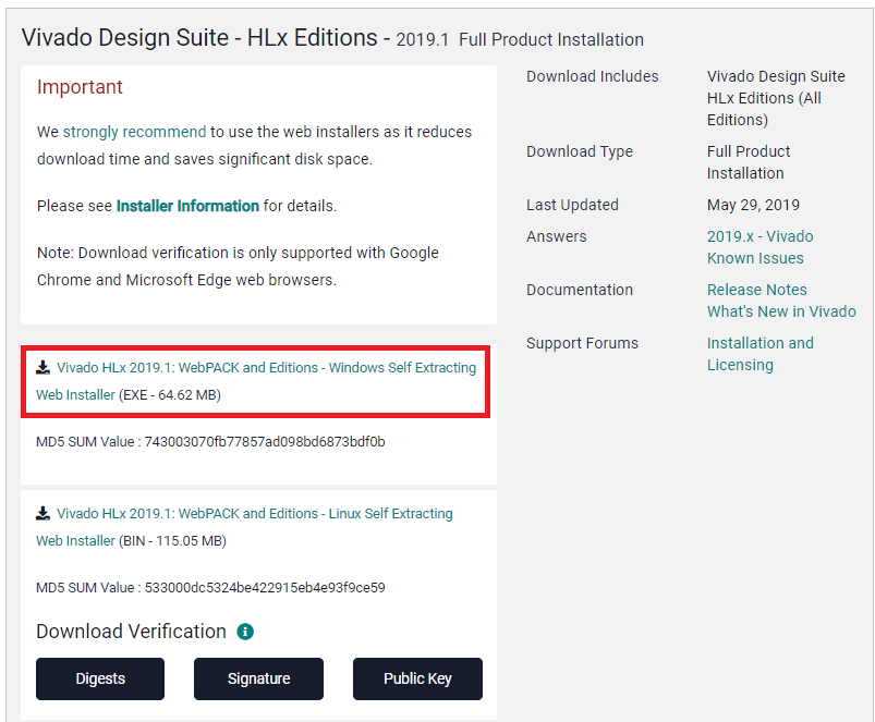 Vivadoのインストーラをダウンロードする