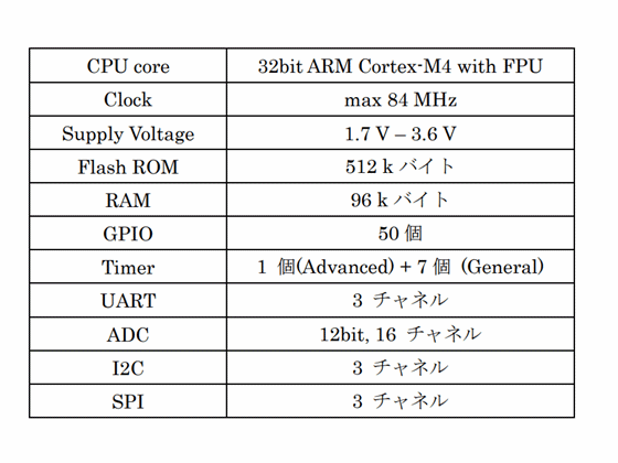 表1に,STM32F401マイコンの仕様を示します. STM32F401には豊富な周辺モジュールが搭載されていますが,いくつかのGPIO(“General Purpose Input/Output”,汎用入出力)とタイマ,UART,I$^2$Cモジュールだけを使います. そのため,違うマイコンを使っても問題なく実験を進められます.