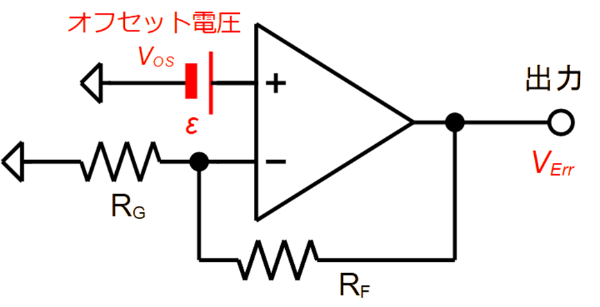 \begin{align*} V_{OUT} = A_{OL} V_{IN} \end{align*}として増幅し,出力$V_{OUT}$が得られるものです.オフセット電圧$V_{OS}$はここに誤差要因$ V_{OS} = \varepsilon$ [V]が加わるもので,