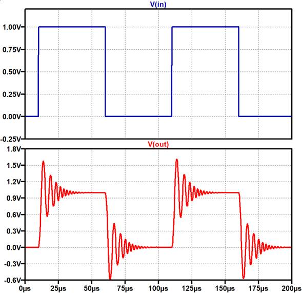 図7に矩形波入力への応答(図6のシミュレーション結果)を示します.また図8にAC解析による周波数特性を示します.