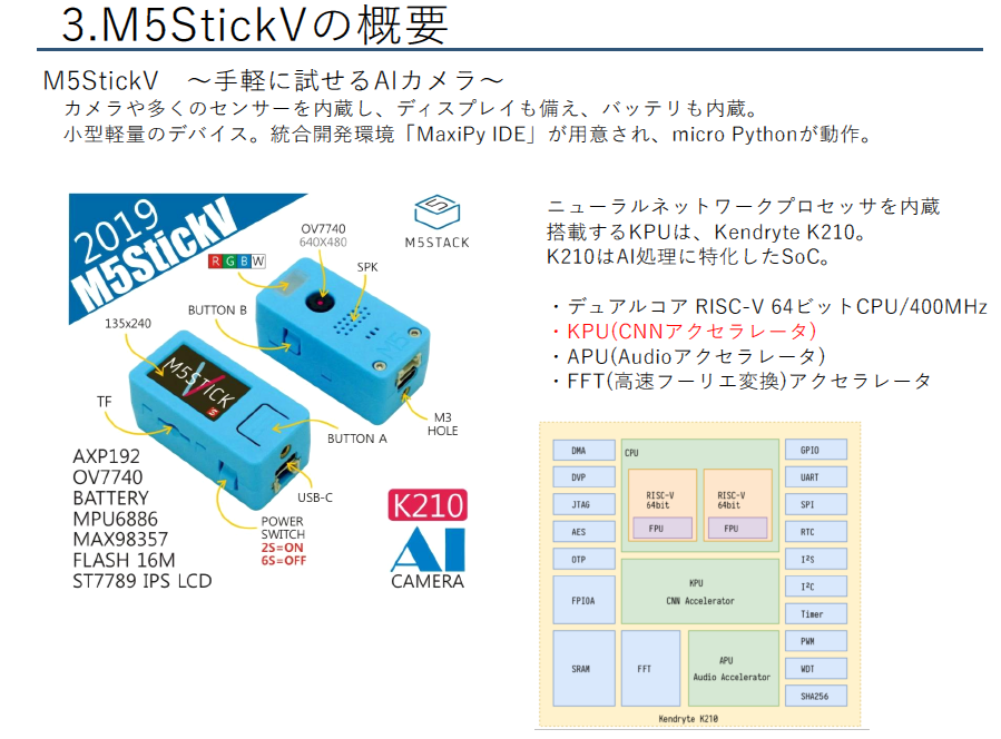 - [VOD/KIT]人工知能カメラM5StickVで作って学ぶ画像解析AI開発入門,ZEPエンジニアリング株式会社.
