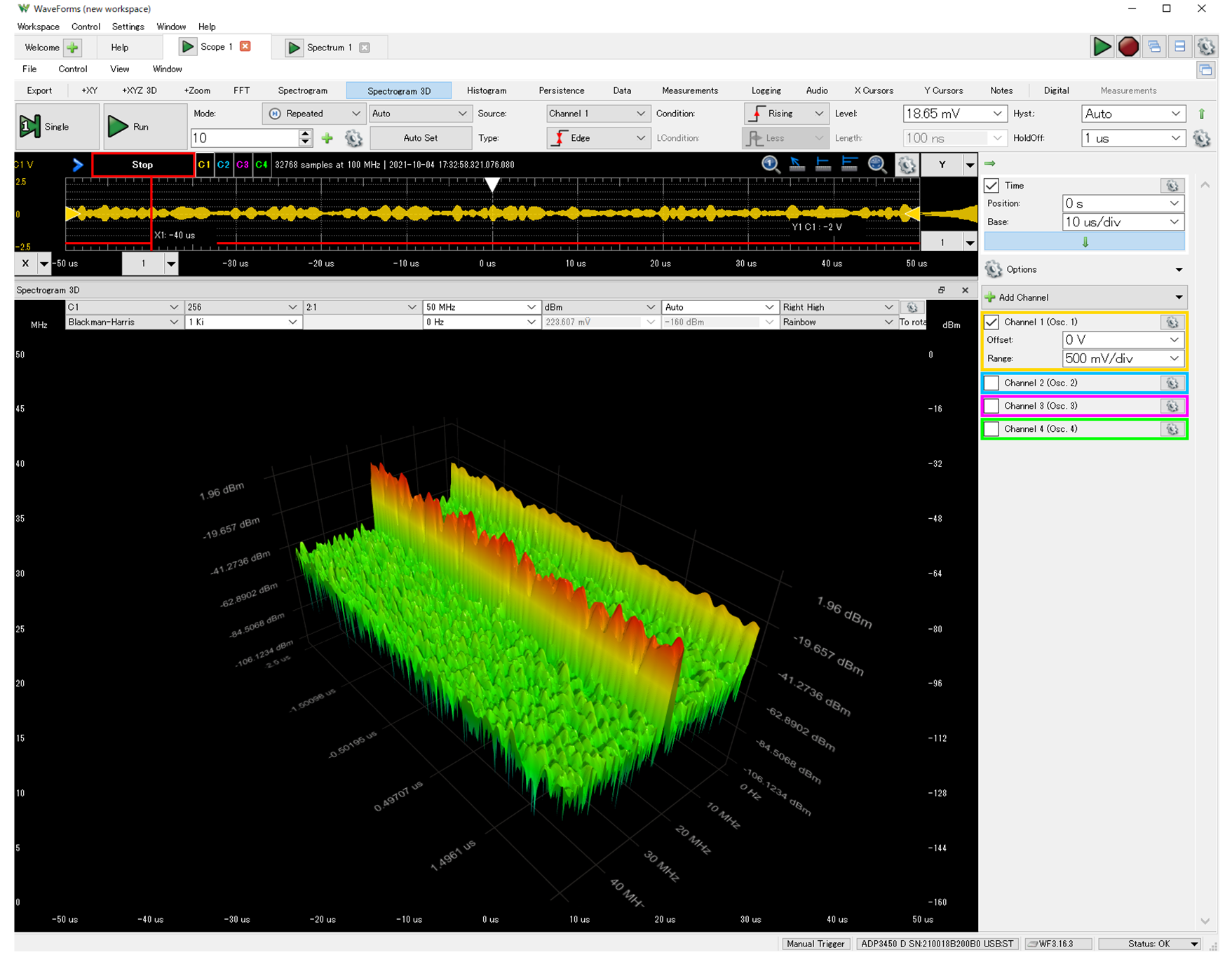 3次元のスペクトラム測定モード“Scope-Spectrogram 3D”