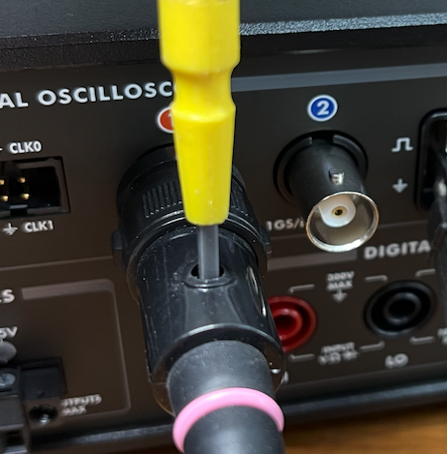 組み合わせるオシロスコープによって,この調整器の最適値は違うので,他のオシロスコープのプローブを流用すると,正しい波形を観測することができません.
