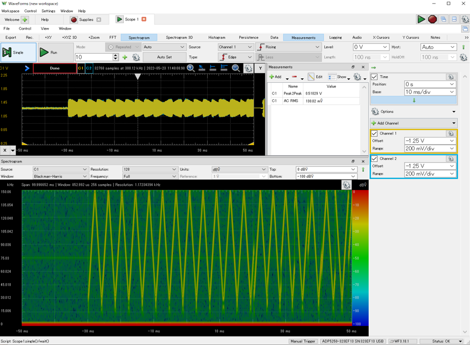 また,コンパクトな自動テスト環境を構築することもできます.その際には,WaveFormsのスクリプト機能や,自作アプリからADP5250を制御できるAPIなどを活用することで,また違った応用が見えてくるでしょう.