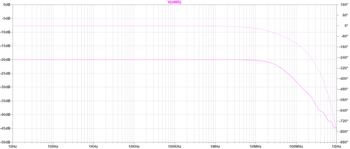 図21に示すのは,パッシブ・プローブ(×1)の解析結果です.このプローブの×1 での周波数特性は10MHz@-3dBです.×10のときは50MHzだったので,大きく悪化しました.